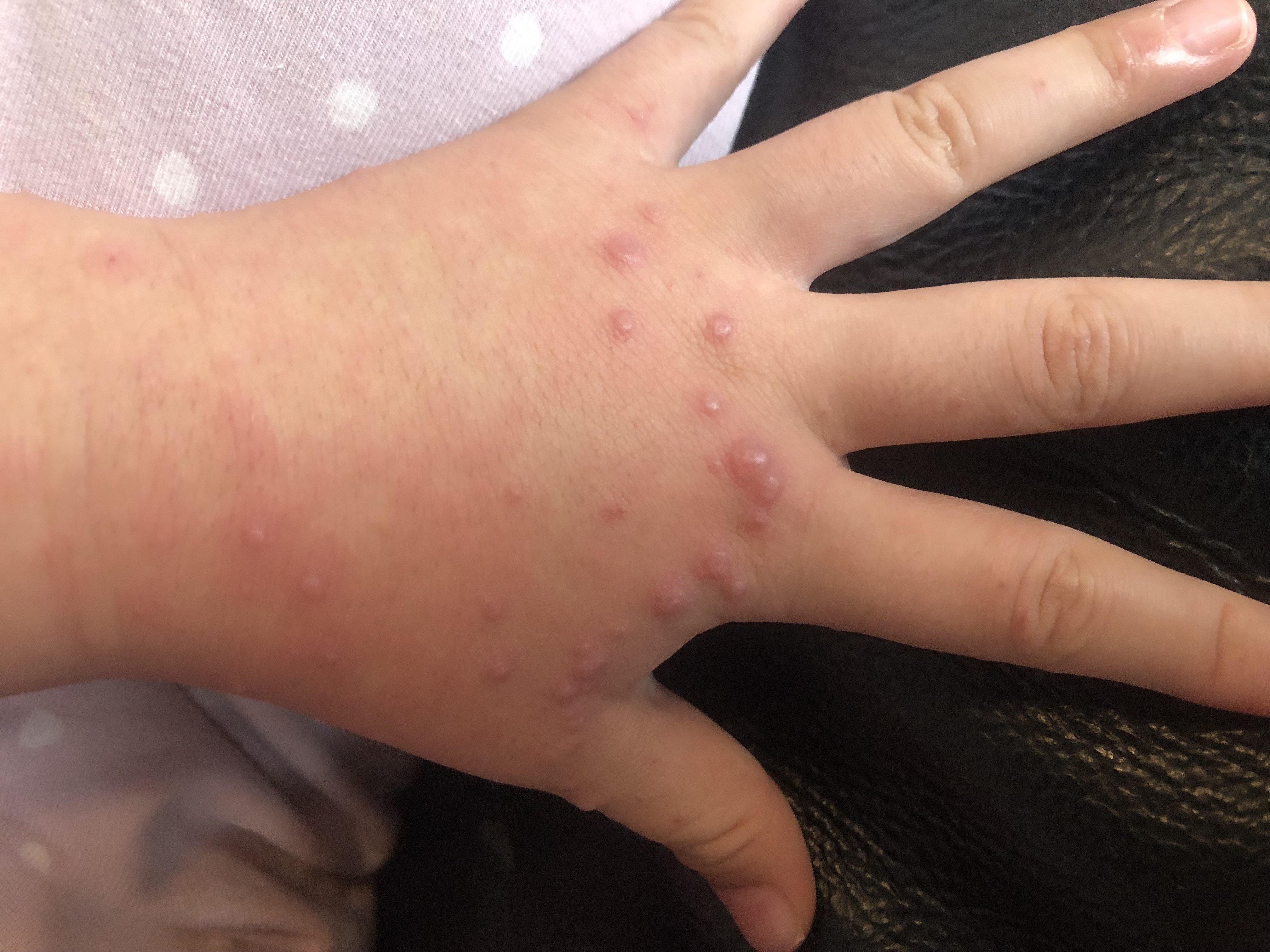 口の中や、手足などに水疱を伴う複数のほっしんが出る感染症です