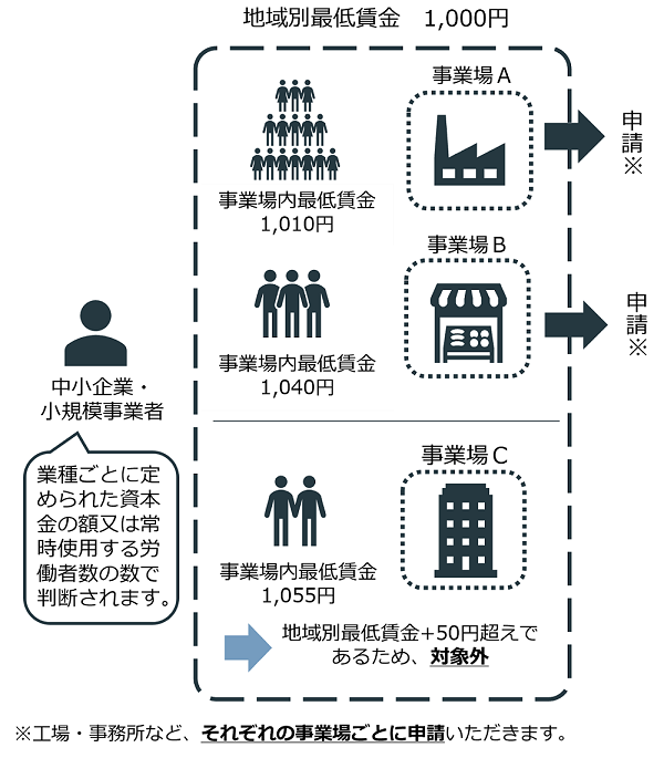 事業場内最低賃金が1,000円未満の事業場に係る申請を行う事業者