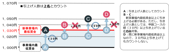 なお、引き上げる労働者の人数の詳しいカウント方法については、以下、<引上げのルール>又はマニュアルをご参照ください。