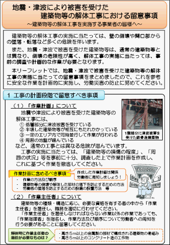 地震・津波により被害を受けた建築物等の解体工事における留意事項 〜 建築物等の解体工事を実施する事業者の皆様へ 〜