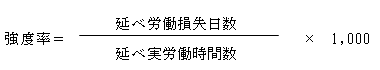 - 1,000 延べ実労働時間当たりの労働損失日数(こちらを参照ください。)をもって、災害の重さの程度を表したものです。