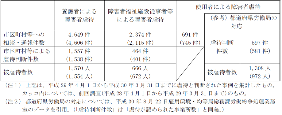 平成29年度都道府県・市区町村における障害者虐待事例への対応状況等(調査結果)について公表します。