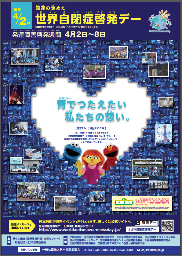 厚生労働省は、国連の定めた「世界自閉症啓発デー」(毎年4月2日)の啓発のために、『セサミストリート』とコラボレーションし、ポスター・リーフレットの作成とSNSなどを通じた情報発信を行います。