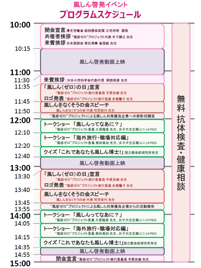施するほか、風しん専門家と大学生によるトークショーなどを開催します。