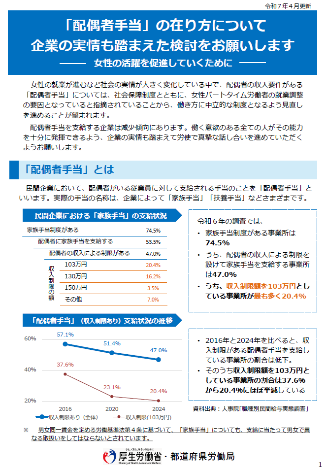 ▶「配偶者手当」の在り方の検討に向けて(リーフレット令和7年4月改訂版)[1.3MB]