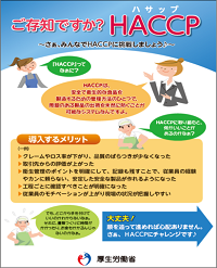 HACCP(ハサップ)とは何か、導入するメリットはなにか、HACCPの7原則12手順について分かりやすく紹介するリーフレットです。