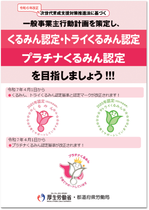 次世代育成支援対策推進法に基づく一般事業主行動計画を策定し、くるみん認定・トライくるみん認定・プラチナくるみん認定を目指しましょう!!!