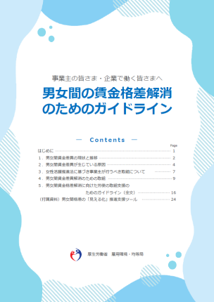 男女間賃金格差の縮小に向けて、賃金や雇用管理のあり方を見直すための視点や、性別を問わず社員の活躍を促進するための実態調査票といった支援ツールを盛りこんだ内容となっています。